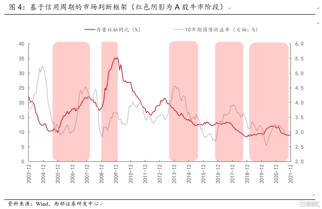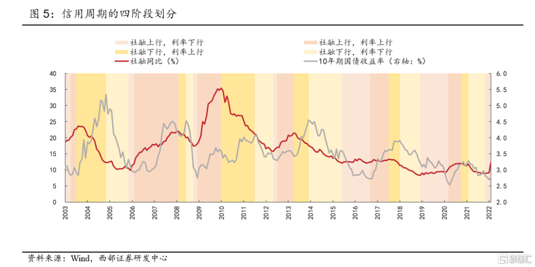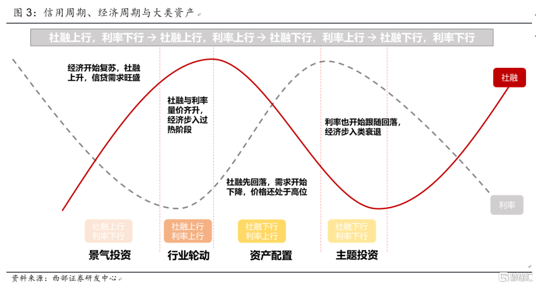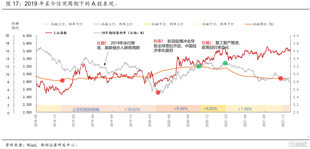 最新一輪信用週期始於2019年1月,社融頂部出現在2020年10月,利率拐點出現在2021年2月末。