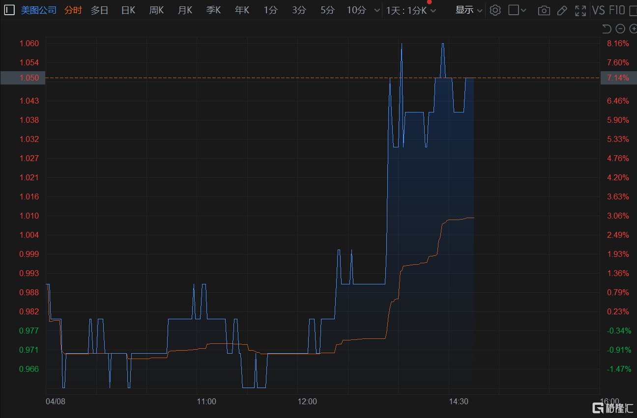 港股異動 | 美圖(01357.HK)漲超7% 日前獲吳欣鴻增持
