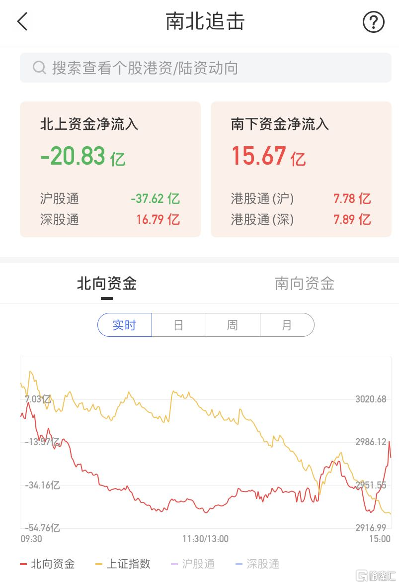 今日,北上資金淨流入-20.83億元,其中滬股通淨流入-37.62億元,深股通淨流入16.79億元。