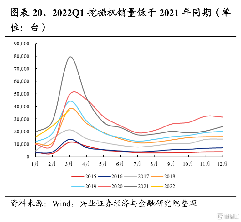 機械2022Q1淨利潤增速爲-29.8%,較2021Q4回落38.6個百分點;2021Q4淨利潤增速爲8.9%,較2021Q3的29.4%回落20.6個百分點。從細分行業來看,受經濟下行及疫情擾動影響,傳統機械的代表挖掘機銷量當月同比增速從2021年5月起持續負增長,拖累板塊整體淨利潤增速;而成長性較強的儀器儀表和專用機械,則成爲板塊淨利潤增長的主要驅動力。往後看,經濟下行壓力之下,“穩增長”政策仍將發力,基建有望發揮託底投資作用,若疫情緩解疊加復工復產推進,傳統機械的銷量降幅或將收窄。而光伏裝機需求持續高增,以光伏設備爲代表的專用機械板塊景氣度有較堅實的支撐。