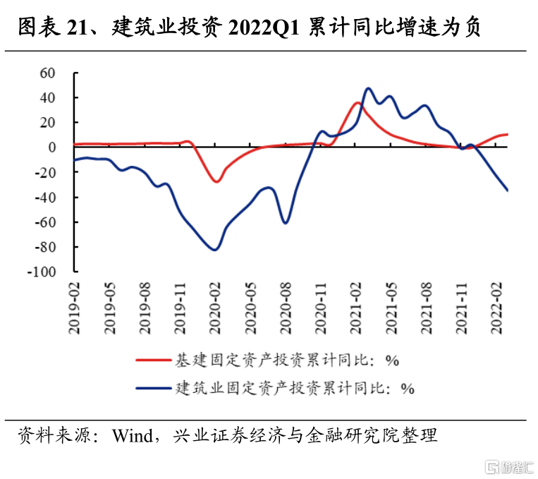房地產2022Q1淨利潤增速爲-60.5%,較2021Q4回升2.7個百分點;2021Q4淨利潤增速爲-63.3%,較2021Q3的-32.0%回落31.3個百分點。自2021年底中央經濟工作會議以來,穩增長政策信號持續釋放,地產融資端及需求端政策放鬆趨勢明確。然而,地產銷售面積仍在同比回落,基本面仍處於下行趨勢,帶動板塊淨利潤同比大幅下滑。往後看,2022年4月29日召開政治局會議,對地產表述積極,包括支持各地從當地實際出發完善房地產政策、支持剛性和改善性住房需求、首提“優化預售資金監管”等,地產政策放鬆的預期還在進一步加強,政策改善疊加地產供給側改革下,資質優秀的房企如央企、國企地產等有望優先受益。