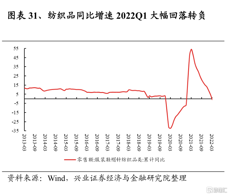 紡織服裝2022Q1淨利潤增速爲35.4%,較2021Q4回升44.9個百分點;2021Q4淨利潤增速爲-9.5%,較2021Q3的9.6%回落19.2個百分點。2022年一季度淨利潤高增,主因是雅戈爾公司集中交付地產項目,致使淨利潤高增。然而疫情反覆影響下,終端銷售需求承壓,板塊中大多數企業2022Q1淨利潤增速仍然呈現回落態勢。往後看,即使疫情有所緩解,但在經濟下行壓力及居民收入增速趨緩影響下,對紡織服裝的消費需求修復將依舊受到阻礙,上遊主要原材料如滌綸等,受油價衝高、檢修減產等因素影響,價格或將繼續高企,二季度紡織服裝淨利潤增速預計將承壓。