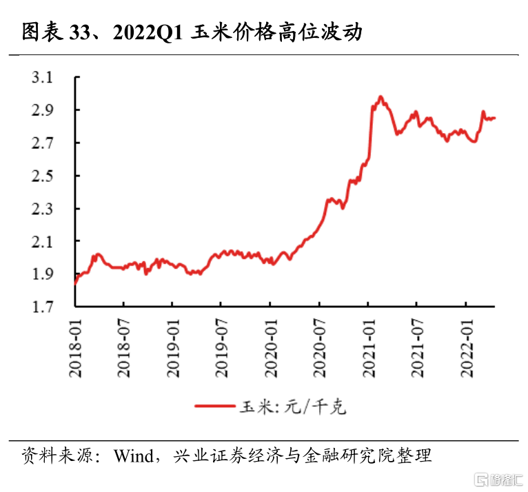 農林牧漁2022Q1淨利潤增速爲-197.9%,較2021Q4回落55.1個百分點;2021Q4淨利潤增速爲-142.7%,較2021Q3的-120.8%回落21.9個百分點。從各細分板塊來看,淨利潤增速均在持續惡化之中;其中畜牧業持續產能去化中,尤其是生豬養豬板塊, 2022年一季度豬價震盪走低,板塊虧損幅度進一步擴大,養殖後周期板塊景氣度也隨之走弱;而種植業方面,2022年一季度受俄烏衝突、疫情擾動春耕等影響,糧價仍維持高位,景氣度相對佔優。往後看,畜牧業方面,能繁母豬存欄同比回落,但仍在高位,疊加4月以來因疫情導致物流運輸受阻,豬肉價格又小幅反彈,如此進一步拉長產能去化的時間,豬價將繼續磨底震盪,二季度淨利潤增速大概率繼續承壓,年底或迎來週期底部;種植業方面,此前由於國際糧價衝高疊加化肥價格走高、春耕受阻,國內糧價一路上漲,但在糧食安全政策大方向下,國內較爲充足的糧食儲備成爲穩糧價的底氣,疊加疫情緩解下春耕夏種推進,糧價增速或將進一步放緩或企穩,進而使板塊淨利潤增速放緩。