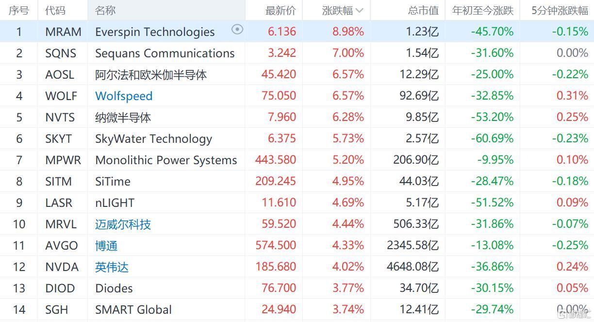 格隆匯5月27日丨半導體板塊集體大漲,納微半導體漲6%,邁威爾科技、博通、英偉達漲4%。