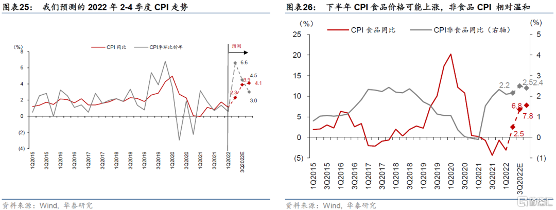2022年3季度起,國內通脹有望上行和海外央行加速緊縮對國內貨幣寬鬆的制約可能將再度上升,預計2022年下半年國內降準降息空間將明顯收窄,即使有進一步的寬鬆信號,幅度或都將十分有限。如第三部分所分析,今年3季度開始國內通脹水平可能明顯攀升,同時歐央行等海外央行大概率加快緊縮步伐,均將對國內貨幣寬鬆造成明顯制約,由此降準和降息空間均較上半年明顯收窄。即使有進一步的寬鬆信號,預計2022年下半年國內降準降息幅度或將十分有限。