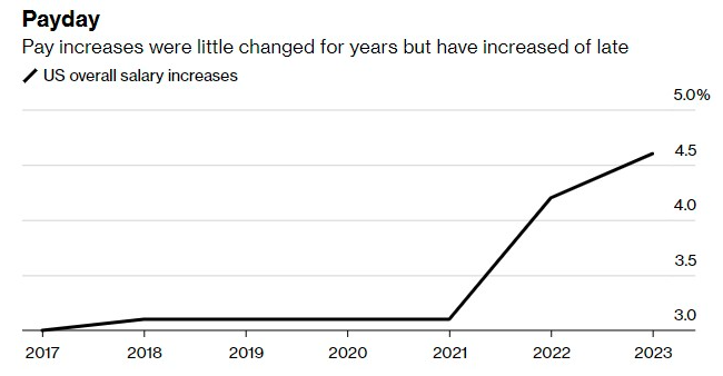 今年早些時候進行的一項類似的WTW調查僅顯示,2023年美國整體工資預計將增長4.1%。在過去一年中,七成公司在薪酬調整方面的支出超過了計劃,並且原本罕見的年中加薪現象變得司空見慣,一些公司正在通過漲價或減少員工總數來應對漲薪的情況。