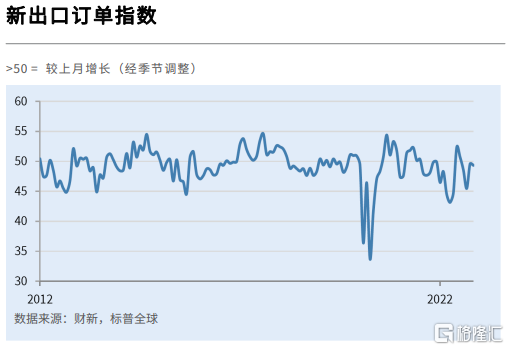 從分項數據看,在疫情的影響下,11月製造業生產指數在榮枯線下走弱,新訂單指數雖然略有回升,但仍落於收縮區間,顯示製造業供需雙弱。其中,消費品類和中間品類新訂單輕微增長,投資品類新訂單大幅收縮。同時,由於疫情下全球經濟放緩疊加國內運輸困難,新出口訂單指數連續第四個月低於臨界點,且降幅擴大。