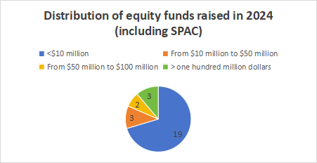 In addition, from the perspective of the amount fundraised, the average level of concept stocks in 2024 is generally low, mostly 5 million to 6 million US dollars, but the overall situation is good. According to the statistics of uSmart Capital, in 2024, there were 19 enterprises with debt fundraising of less than $10 million, accounting for 70%; 3 enterprises with fundraising of more than $100 million, including the newly listed Zeekr Auto in may, and the other two are Amer Sports and Lutus Technology, both of which are well-known brands in China.