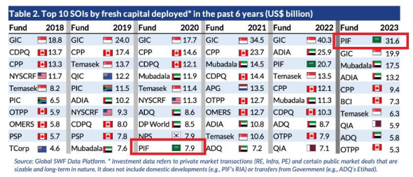 Global SWF's latest annual report revealed that in terms of frequency of investment activity, PIF led all SWFS as the most active investor in 2023, allocating $31.6 billion across 49 deals, a 33% increase over the previous year.
