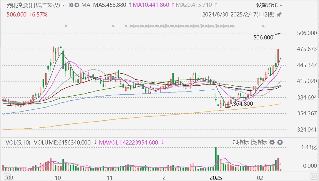 港股異動丨騰訊高開6.5%,重上500港元,創2021年7月以來新高