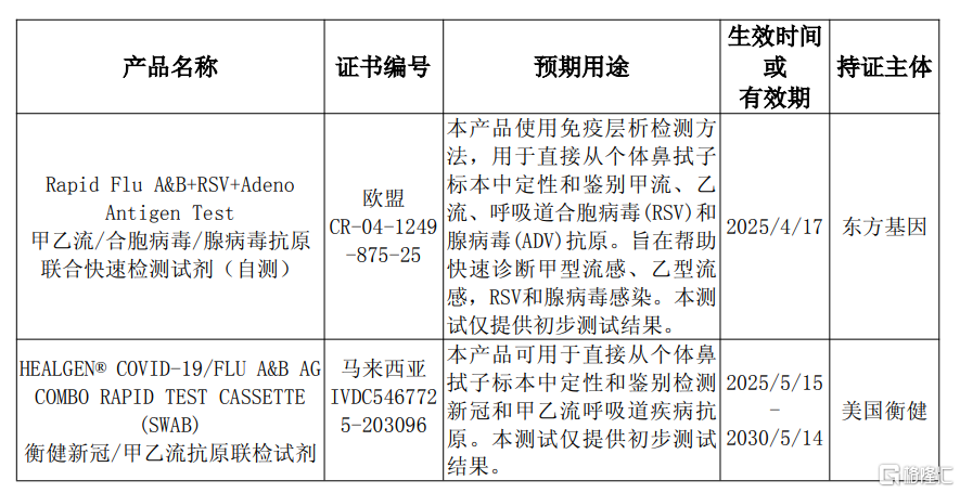 格隆匯5月20日丨東方生物(688298.SH)公佈,公司及子公司近日分別取得呼吸道聯檢(膠體金)產品境外註冊證及腫瘤標誌物(流式熒光發光法)的NMPA證書,同時子公司上海萬子健醫學檢驗實驗室有限公司(簡稱“上海萬子健醫學實驗室”)獲得中國合格評定國家認可委員會(CNAS)實驗室認可證書。