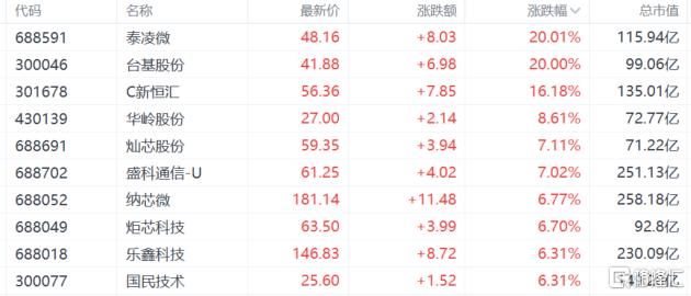 半導體板塊走強,泰凌微、臺基股份漲停,納芯微漲超7%,中芯國際漲超3%。消息面上,隨着原廠相繼宣佈停產DDR4內存,市場掀起搶購潮。申萬宏源研報指出,三大原廠停產推動DDR4價格持續上行,國內存儲產業鏈有望受益。