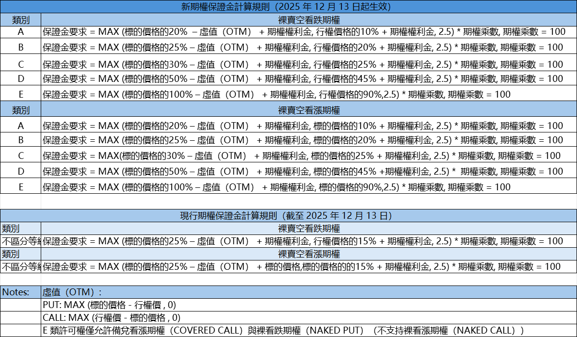 為提升風險管理能力,本公司將於2025 年 12 月 13 日起正式採用等級期權保證金計算方式。敬請重點關注以下三大核心事項: