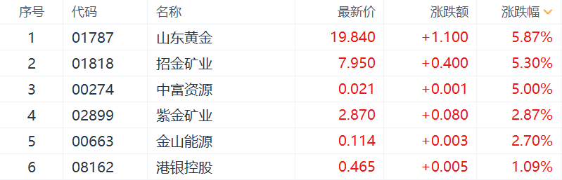 今日港A两地股市普跌,但两地黄金股逆势上涨。港股市场上,山东黄金以5.87%的涨幅领涨,招金矿业涨超5%,紫金矿业涨2.87%。分析人士指出,近期国际宏观形势不稳,而现货市场购买力不断增强,全球各大央行都有购买现货金的迹象,多重利好因素或将助推国际黄金期价再度上扬。