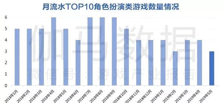 • 移动游戏收入TOP10中RPG游戏数目达到2018年以来最低