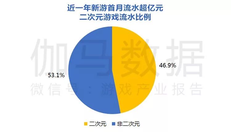• 近一年首月流水过亿元新游中,二次元游戏占比46.9%