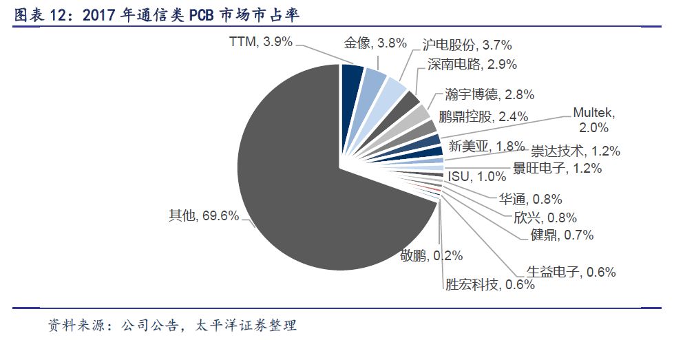 3、我们分析了通信板的竞争壁垒,认为壁垒主要在于技术壁垒,客户认证壁垒和可靠性。高频高速材料的处理难度相对较高;严格的供应商资质认证对新进入者形成了较高的市场进入壁垒;5G设备的品质和可靠性的要求,使得在5G设备建设初期设备商应该会采用原有长期合作有信任基础的厂商。