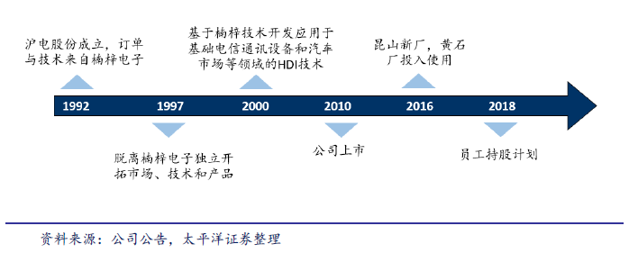 历史沿革:公司成立于1992年4月,1995年10月份开始投产。此时公司主要生产用于电脑主机、电脑周边产品和模拟制手机上的消费型电子元器件;主要生产技术为双面四层板,该技术来源于楠梓电子的经验传承和技术转移;生产订单来源于楠梓电子生产能力饱和时的剩余订单。
