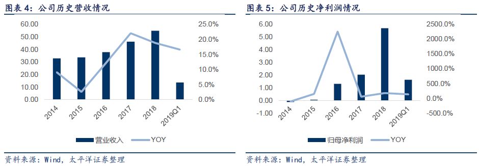 受益于昆山新厂产能利用率的攀升以及黄石厂的扭亏,2018年公司迎来了盈利释放,公司收入54.97亿元,同比增长18.8%;实现归母净利润5.70亿,同比增长180.3%。2019年Q1公司延续高增长态势,公司收入13.63亿元,同比增长16.6%;实现归母净利润1.62亿,同比增长131.5%。