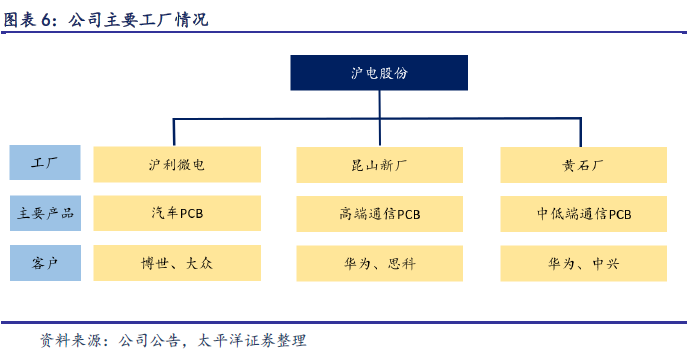 当前公司的产能主要分布在三个工厂:沪利微电、昆山新厂和黄石厂。其中沪利微电主要产品是汽车PCB,受环保排放限额影响弹性有限;而昆山新厂青淞厂青淞厂中端产品转移到黄石一厂有序开展,产品结构逐步优化,积极备战5G建网;黄石一厂2018年扭亏,产能有望进一步提升,另外定位汽车板的黄石二厂预计2019年底建设完成。