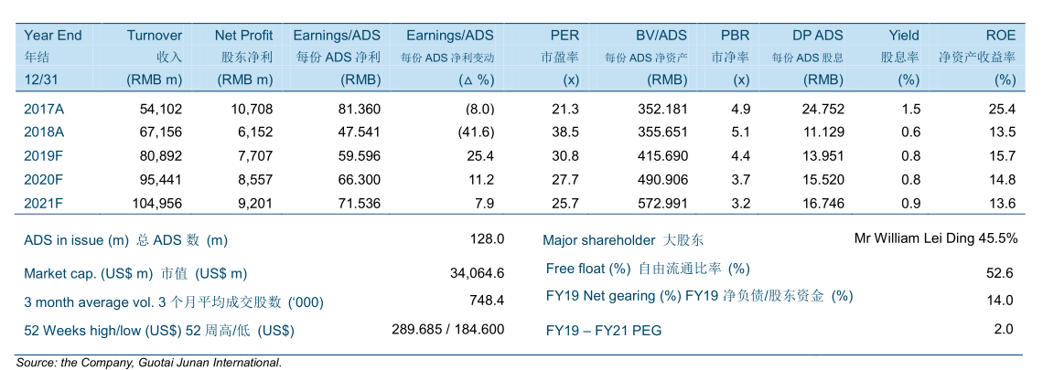 我们设定投资评级为投资评级为“买入”,,目标价为为285.00美元。由于较强的游戏储备与有效的成本控制,我们相信公司仍然可以维持其盈利势头。2019财年至2021财年非GAAP净利润预计分别同比增长24.1%/13.2%/9.3%。新的目标价对应33.0倍的2019财年市盈率、29.7倍的2020财年市盈率以及27.5倍的2021财年市盈率。
