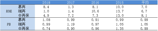 看完收入端,再看利润端。对比企业ROE值可见虽然三家公司都具备周期性,但是国际龙头的利润波动更大,2017年受巨灾影响ROE最低跌到1%附近。中再保过去四年平均ROE为8.1%,甚至高于这两大再保险巨头。这表明相比国际龙头,中再保利润增长更为平稳。