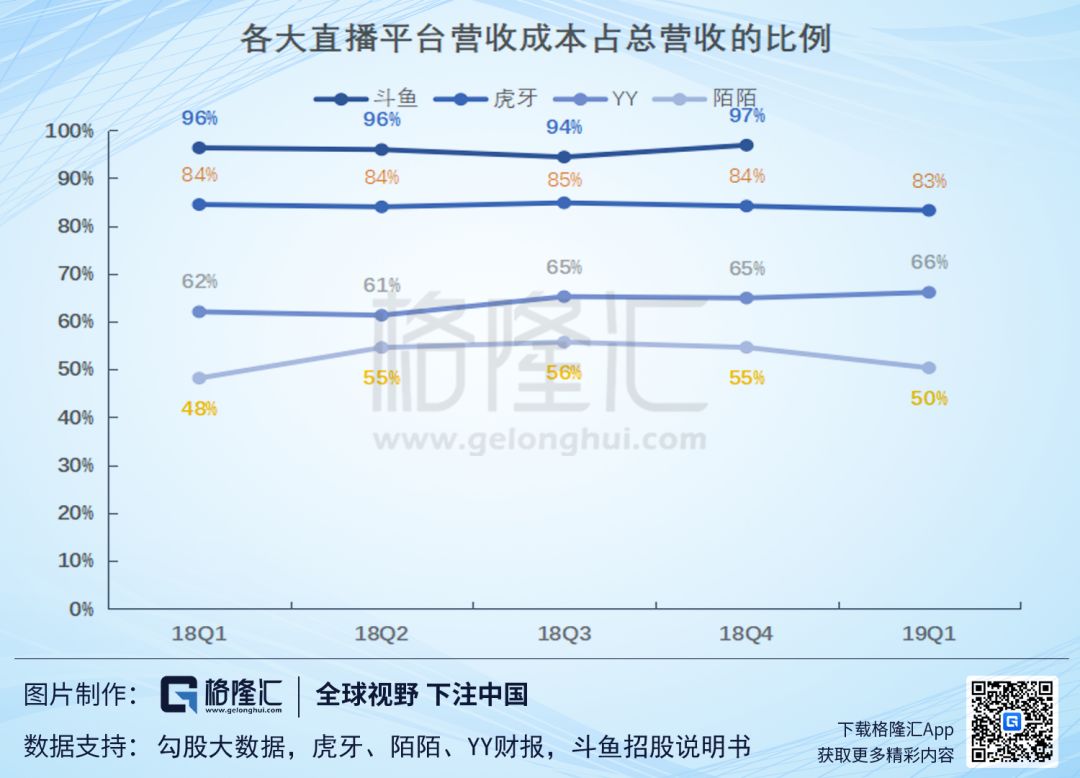 相比之下,YY有完整的工会帮助快速培养和孵化头部主播,陌陌也在建立自己的工会,这使得YY和陌陌的营业成本占比有所上升,但是总体还是低于游戏直播平台。