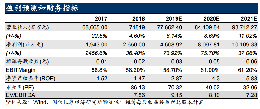 看好公司长期发展,给予“增持”评级,建议积极关注我们预计公司2019-2021年的EBITDA为455.87/514.90/573.52亿元,截止至2019年6月21日,公司的EV(剔除货币资金)为4182.73亿元,为对应EV/EBITDA为9.15/8.10/7.28倍。考虑到公司未来盈利能力的提升空间及在全球范围对比下适度偏低的EV/EBITDA,长期来看具备一定的投资价值。