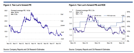 在DCF模型的测算下,花旗给予天伦燃气11港元/股的目标价,距离6月26日的收盘价8.16港元仍有近35%的涨幅空间。同时,花旗预测天伦燃气2019年净利润对应的PE及PB分别仅有7.3倍及1.8倍,较公司历史平均的估值分别大幅低50%及22%,在公司及行业基本面持续改善的背景下,估值十分吸引,具备充足的增长弹性。
