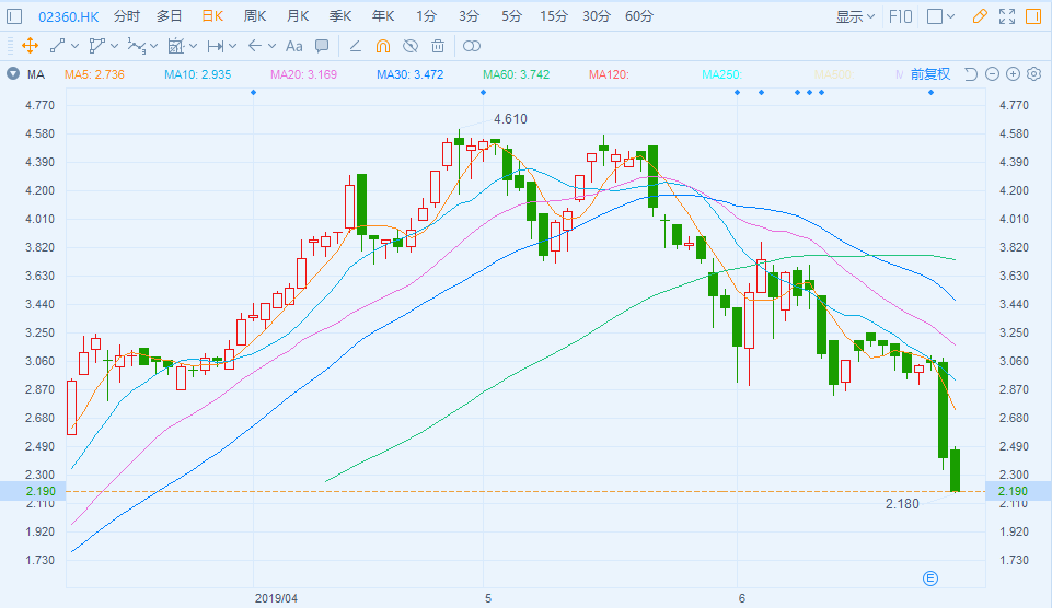 格隆汇6月28日丨优品360(2360.HK)今日续跌,暂两连跌累跌逾28%。现报2.19港元,跌9.5%,暂成交1494万港元,最新总市值21.9亿港元。