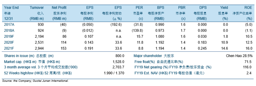  我们维持投资评级为“收集”,并将目标价上调至 2.10 港元。目标价对应 16.7 倍的 2019 年市盈率和 12.5 倍的 2020 年市盈率。公司将面临的下行风险包括:1)中国汽车销量增 幅将进一步下滑;2)在摩洛哥建厂的新业务可能失败;以及 3)北京汽车销量下降幅度超 过预期。