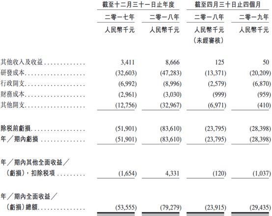 截至2017至2018年度,公司实现营收分别为341.1万元及866.6万元;实现净亏损分别为5190.1万元及8361万元。