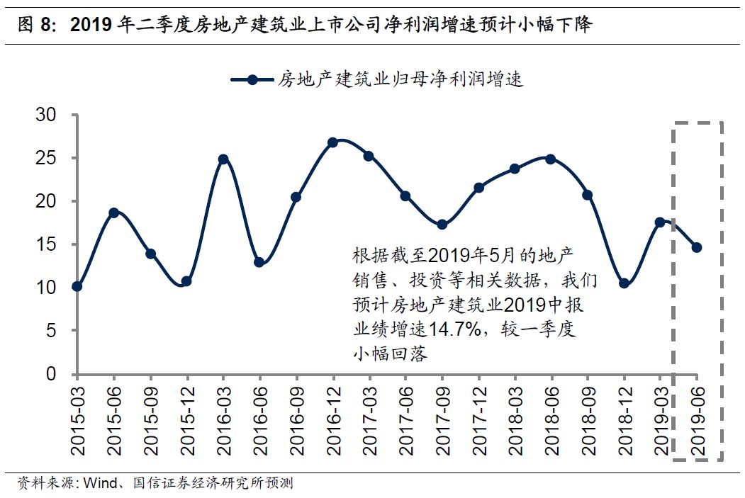 我们预计2019年二季度地产建筑业的利润增速较一季度将小幅下滑,从影响房地产建筑业上市公司利润的主要因素来看,2019年二季度商品房销售情况仍然不容乐观,新建商品住宅价格指数与一季度基本持平,在价格平稳、销售下行的情况下,我们判断2019年二季度地产建筑业的利润增速将较一季度小幅下滑。