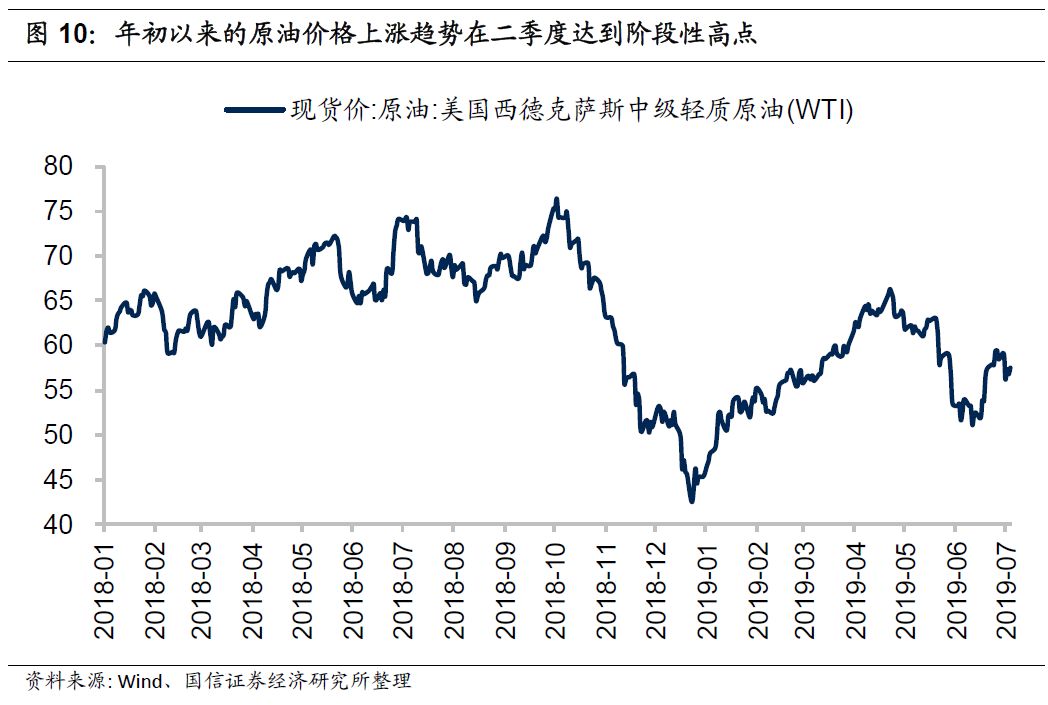 交通运输行业盈利情况结构性的变化体现在航空及铁路运输业上。在《ROE基础策略框架系列:构建自上而下的盈利高频跟踪模型》报告中,我们指出航空运输业的利润增速与原油价格的走势高度负相关。2019年年初以来,原油价格有所回升,这一上升趋势在二季度达到了阶段性高点。考虑到6月份原油价格有所下降,预计航空业二季度业绩受到的影响可能要小于预期。另一方面,二季度后,铁路货运量同比增速较一季度明显回落,铁路运输业利润增速预计也将较一季度下滑。