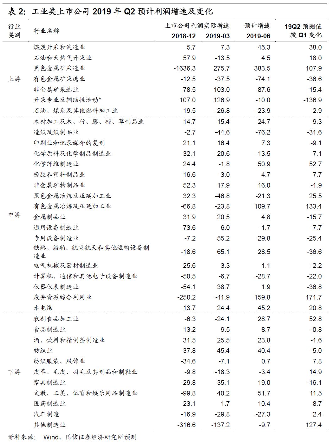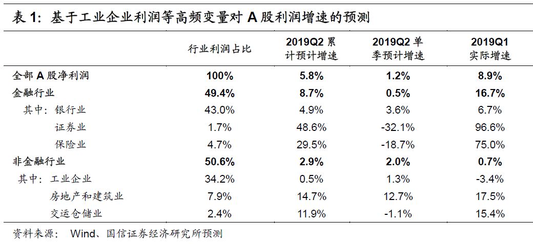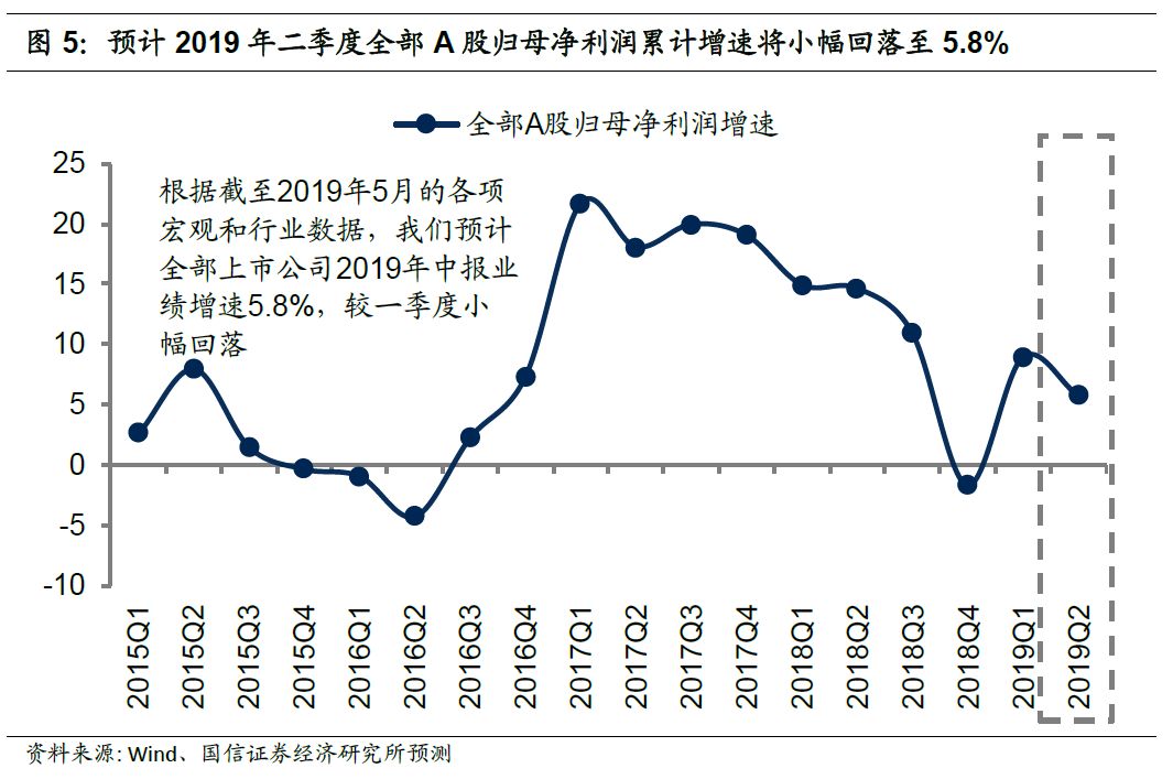 A股自上而下盈利跟踪模型预计2019年中报业绩较一季报回落