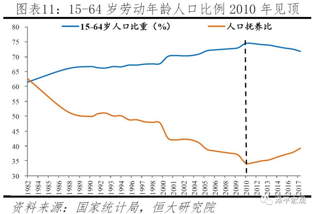 1)劳动力规模持续萎缩,2050年将比2018年大幅减少24%。1978年改革开放后,中国依靠庞大且年轻的劳动力资源,以及与之相关的巨大市场,快速成长为世界第二大经济体。1962-1975年第二轮婴儿潮人口是改革开放40年的建设主力,生产和储蓄多,消费少,导致储蓄率和投资率上升,储蓄超过投资部分产生贸易顺差,同时过剩的流动性和人均收入水平提高推动消费升级,经济潜在增速较高。在长期低生育率背景下,中国15-64岁劳动年龄人口比例及规模分别在2010年、2013年见顶,而日本、美国、英国的劳动年龄人口比例分别在1991、2009、2013年见顶,当时的人均收入远高于中国。2018年中国劳动年龄人口降至约9.9亿,中国就业人员总量首次出现下降。按照当前趋势,到2050年中国劳动年龄人口将在2018年的基础上再减少2.4亿至7.5亿,即减少约24%。根据2010年人口普查资料,80后、90后、00后人口分别为2.19亿、1.88亿、1.47亿,90后比80后少约3100万,00后比90后少4100万。随着劳动力供给总量持续萎缩,劳动力成本将日益上升,部分制造业已经开始并将继续向东南亚、印度等地迁移。从边际上看,中国人口红利已经结束,面临“未富先老”局面,未来储蓄率和投资率将逐渐下降,消费率将逐渐上升,经济潜在增速下滑。从绝对水平看,当前中国人口总抚养比约40%,未来一段时间仍处于人口负担相对较轻的“人口机会窗口期”(小于50%)。