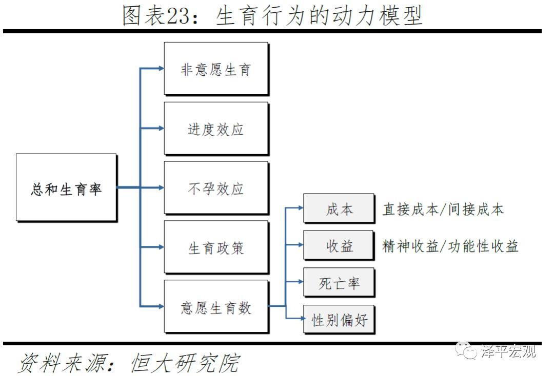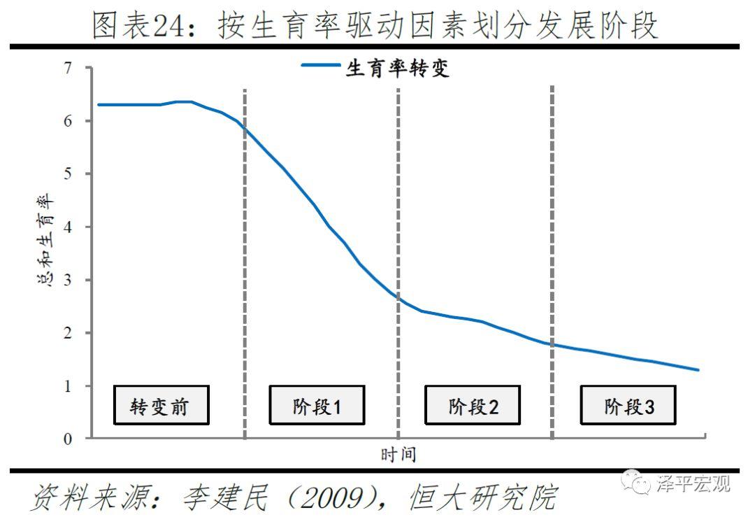 根据驱动生育率下降主导因素的变化,可以将人类历史划分为四个阶段1)高死亡率驱动阶段,人们需要以高生育率抗衡高死亡率,总和生育率多在6以上。农业文明时期生养孩子的直接成本很低、农业生产的闲暇时间多、机会成本低。而且劳动密集型的农业生产模式决定生养子女的预期经济收益高,农民只能依靠养儿防老,家族地位也与人丁是否兴旺密切相关。公共卫生条件落后、战争频繁等因素导致死亡率高达20‰或30‰以上,这使得人民不得不以高生育率抗衡高死亡率。2)死亡率下降驱动阶段,人们认识到低生育率也能保证收益最大化,总和生育率从6以上降到3左右。随着公共卫生条件大幅改善、医疗技术大幅进步,死亡率持续大幅下降,人类不再需要以高生育率对抗高死亡率,生育率随着避孕节育技术进步而下降。从国际经验看,这种自然转变大多有15-25年的时滞。1950-1970年中国死亡率大致从约20‰降至8‰,1970-1978年中国总和生育率从5.8降至2.73)功利性生育消退阶段,人们的生育行为更接近情感需求,并重视子女质量提升,总和生育率大致从3降到2左右。由于死亡率已降至低水平,影响生育行为的主导因素转变为收益问题。随着经济社会现代化发展,生养孩子的直接成本上升,特别是受教育程度普遍提高后、女性更多参与就业使得生育孩子的机会成本上升;而在收益方面,精神收益与收入基本不相关,功利性收益下降,导致意愿生育数下降。并且,收入上升使得家庭对孩子质量的需求更大。这逐渐使得家庭的生育行为逐渐远离功利,接近一男一女两个孩子的情感需求,总和生育率大致降到2左右。中国这种转变大致发生在1979-1990年,除计划生育政策影响外,还在于改革开放后工业化、城市化快速推进,乡镇企业发展以及农村人口大量迁向城市打工。4)成本约束的低生育率阶段,总和生育率降至更替水平2以下,低于意愿生育水平。在现代社会,生育率的进一步下降不是因为意愿生育意愿数的减少,而主要是成本提高导致人们的生育意愿不能完全实现。实际生育水平与意愿生育水平的差距决定于成本的高低。
