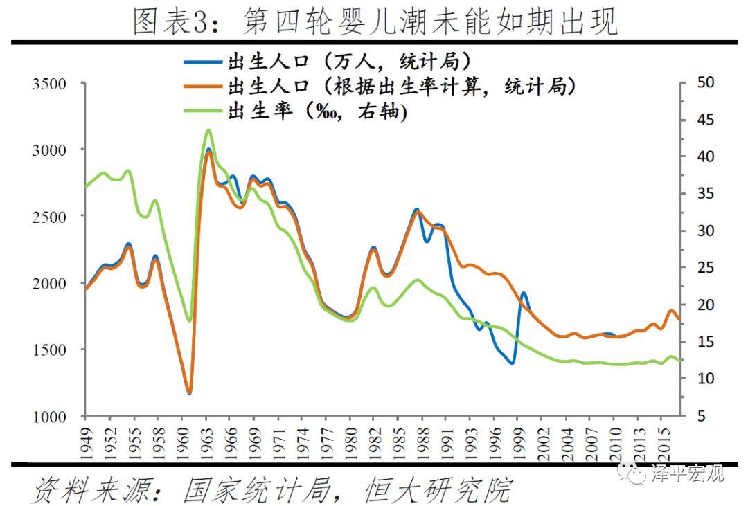 1)1949年以来中国出现了三轮婴儿潮,总和生育率从1970年代之前的6左右降至1990年的2左右,再降至2010年后的1.5左右,第四轮婴儿潮因长期严格计划生育未能如期出现。总和生育率指每个妇女一生平均生育子女数,但官方数据存在对低龄人口的漏登导致低估总和生育率。我们基于教育部门的小学生入学数据和漏报率修正了近年总和生育率。第一轮婴儿潮出现在1950-1958年,因新中国成立后人民生活安定、经济恢复发展、医疗卫生条件改善,出生人口年均2100万,峰值接近2300万(1954年),出生率基本在30‰以上,总和生育率平均5.3。1959-1961年三年困难时期,出生人口、出生率、总和生育率均大幅下滑。第二轮婴儿潮出现在1962-1975年,出生人口年均2628万,峰值超过3000万(1963年)。这其中既有三年困难时期过后的补偿性生育因素,也与文化大革命时期计划生育工作受冲击有关。不过,在1970年代“晚稀少”政策下,1970-1977年出生人口从1970年降至1789万,出生率从33‰降至19‰,总和生育率从5.8降至2.8,1980年更是低至2.3。第三轮婴儿潮出现在1981-1991年,出生人口年均2260万,峰值2550万(1987年),出生率大致在20‰-23‰之间,总和生育率平均2.3。之后出生人口逐渐降至2003年的约1600万,官方总和生育率降至1.4左右、修正后约1.6。第四轮婴儿潮应在2010年后出现,但因长期严格执行计划生育而消失,2010年官方总和生育率降至1.18,修正后仅1.5。