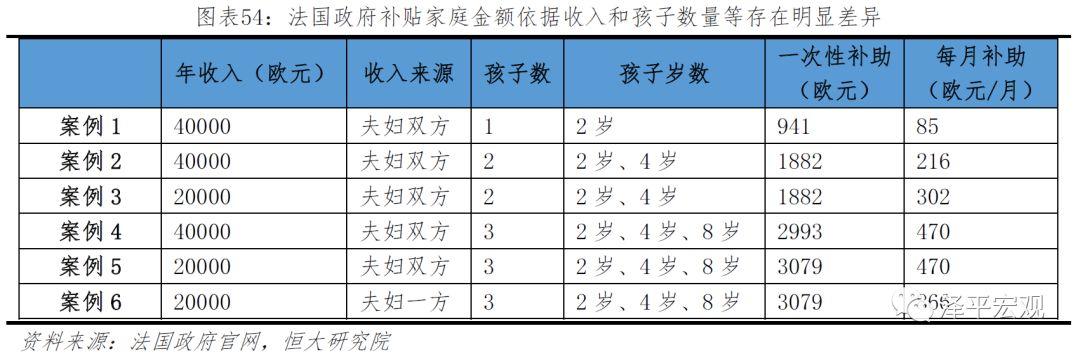 2)发放经济补贴,涵盖出生、养育、托幼、父母收入损失等多方面,2013年法国家庭福利开支占GDP比重达3.7%,在OECD国家中排名第三。目前法国已建立比较完善、多样化的津贴制度,涵盖幼儿出生、养育、托幼、对父母收入损失的补贴等多个环节,且补贴金额依据家庭收入和孩子数量等存在明显差异。根据OECD数据,2013年法国家庭福利开支占GDP比重为3.7%,在OECD国家中排名第三,仅次于英国和丹麦,高于OCED平均水平的2.4%。