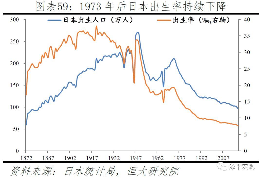 1)二战后日本的家庭政策经历了控制人口、稳定人口、鼓励生育三阶段。1948-1970年是控制人口增长阶段。1947-1949年,日本经历了第一次婴儿潮,三年共出生802万人,出生率由1945年的26.4‰急速上升到1949年的32.9‰。日本开始研究如何抑制人口增长,1948年日本政府出台《优生保护法》,实行少生优育,放宽人工流产限制;1949年日本众议院决定健全和普及“家庭计划”,免费派发避孕工具和避孕药品等。1971-1989年是稳定人口规模阶段。1971-1973年,日本第二次婴儿潮出现。1974年日本总和生育率首次降至更替水平以下,1974年日本厚生劳动省把静止人口作为人口发展的新战略目标。