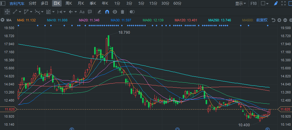 格隆汇8月22日丨吉利汽车(0175.HK)盘初现快速拉升,现涨5.25%,报11.62港元,暂成交2.2亿港元,最新总市值1059亿港元。