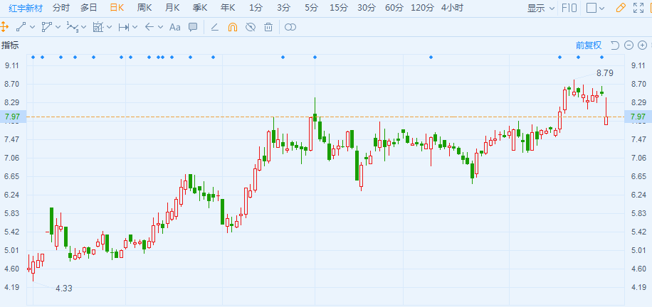 A股异动 | 红宇新材逆势跌逾6% 成交额放大至逾1亿
