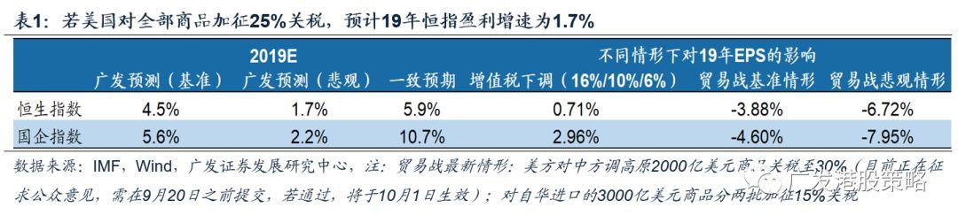 另外,从市场对于港股EPS的一致预期来看,纵然面临人民币贬值、中美贸易冲突等“逆风”,但今年不同以往的一大优势在于投资者的预期足够低,无需担忧EPS下调风险——事实上,剔除掉汇率因素后,港股年初至今的EPS下调幅度较微弱。从我们预期来看,在基准的关税条件下,恒指19年EPS增长预计约4.5%,而最新自下而上的EPS增速为6%,预计进一步下调的可能性有限。