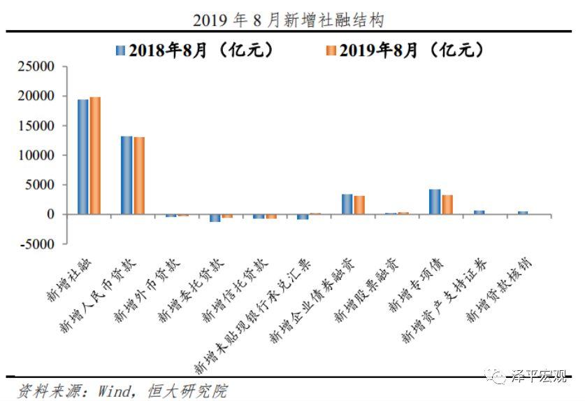 加大逆周期政策,8月社融增速持平。8月20日,LPR形成机制改革首次报价,1年期LPR为4.25%,比原来基准利率下降了10个BP。加大逆周期政策,8月新增社会融资规模1.98万亿元,同比多增376亿元,存量社融同比增速10.7%,与7月持平。