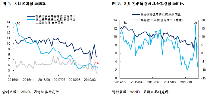 8月份消费、投资、工业增加值三项数据均较7月份有所下降且低于市场预期。宏观数据连续2个月下降,侧面反映出我国经济面临的严峻考验。