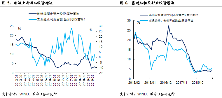 消费方面,乏力的汽车消费依然是本月社会消费数据最大的拖累项,在即将到来的销售旺季中,汽车销售数据尚未看到好转的迹象。投资方面,受贸易战升级的干扰,制造业投资在连续三个月低位回升后,再度下行。本月中西部三四线城市地产销售、投资仍显坚挺,支撑起了地产投资,不过伴随着主要地产企业去库存并从三四线城市撤离,未来地产投资高增速的现状或难以持续。同时政府托底节奏加快,明年专项债额度提前下发,将对未来基建投资形成正向作用。工业生产方面,外需恶化带动本月生产活动走弱,但基建的回暖已经反映在工业品价格中,未来价格向生产的传导则一定程度上受环保政策力度的影响。