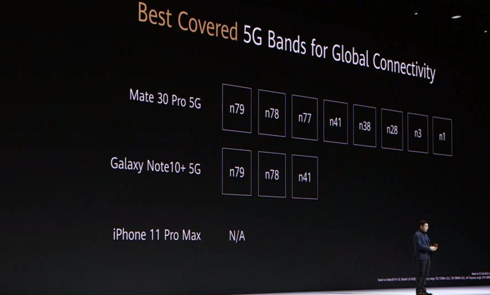 可以说,射频性能是华为 Mate 30 相比竞品最大的优势,余承东在这个环节的对比中,自信地调侃起了苹果:“有的手机甚至不支持 5G。”
