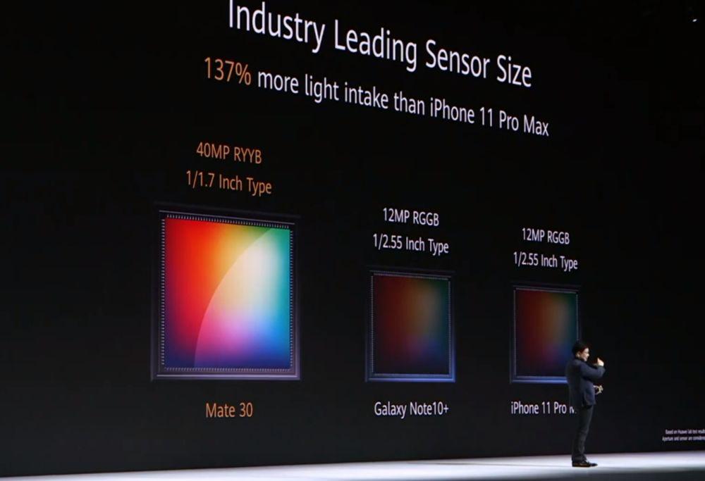大底+超感光传感器,余承东表示 Mate 30 Pro 能比竞品多接收 137% 的进光量,“拍得亮”始终是华为影像追求的目标,发布会的样张,别家拍出来是乌漆嘛黑,华为能拍到可用的画面;另外,Mate 30 系列并没有搭载 P30 系列的潜望式镜头,而是较为常规的三倍光学变焦,五倍混合无损变焦。