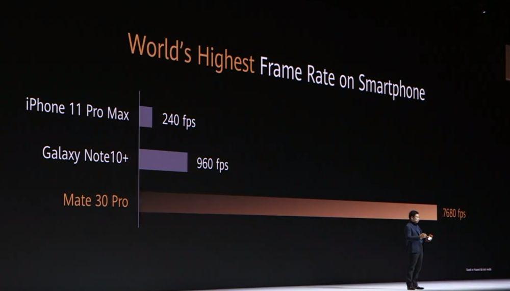 华为也终于开始在视频上发力,带来了 7680fps 的慢动作摄影,虽然只能在 720P 分辨率下达到,但这个数字依然高得夸张,苹果目前的规格为 240 fps,而三星 Note 10 为 960 fps。华为的慢动作是直接输出还是通过插帧算法,还有待后续上手检验。目前,华为的一些高管已经放出了一些效果视频,可以看到亮度并未有明显衰减,可见这个慢动作华为是下了一番功夫。
