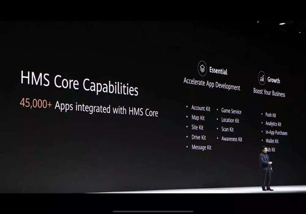 发布会上,余承东介绍了华为自家的 HMS(Huawei Mobile Services),在无法使用 GMS 的情况下,一定程度上提供补救方案,但开放的 Kit 仍需应用支持,而这需要时间。